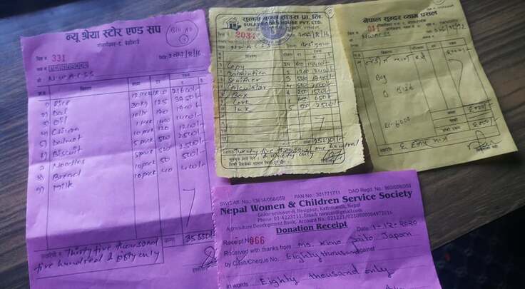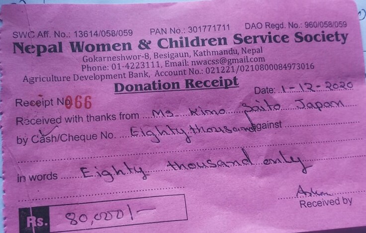 80,000 NPRを孤児院が受け取りました。主な内訳は以下の通りです。