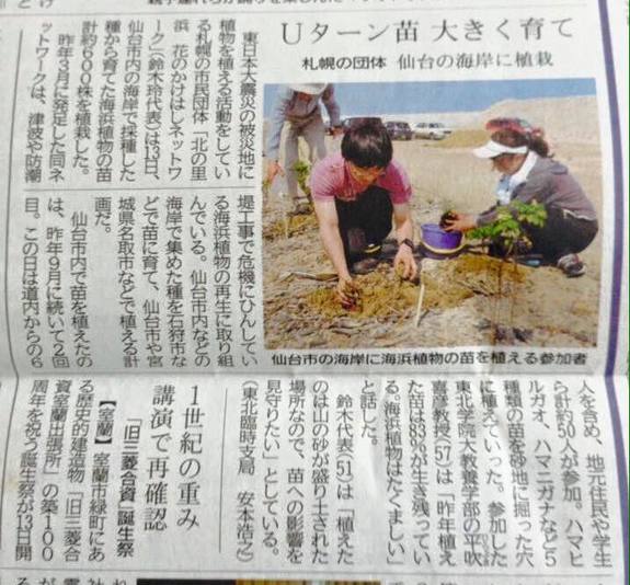 仙台海岸での植栽が、北海道新聞で紹介されました。
