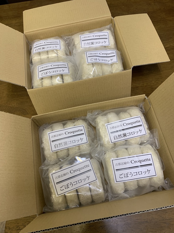 今日は、各コースの自然薯コロッケ・ごぼうコロッケとお米定期便のお米の発送準備をいたしました。