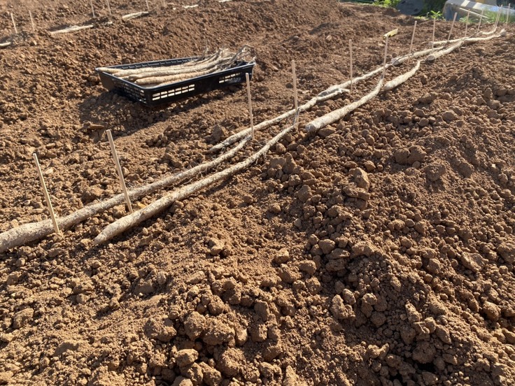 今年もいい芋に育つように心を込めて一本一本植えています!