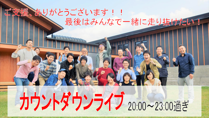 20時より、クラウドファンディングが終了するその瞬間まで、ライブ配信を行いたいと思います。