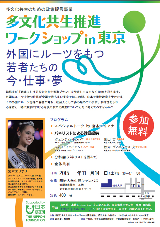◆主 催: (特活)多文化共生マネージャー全国協議会、明治大学 山脇ゼミ