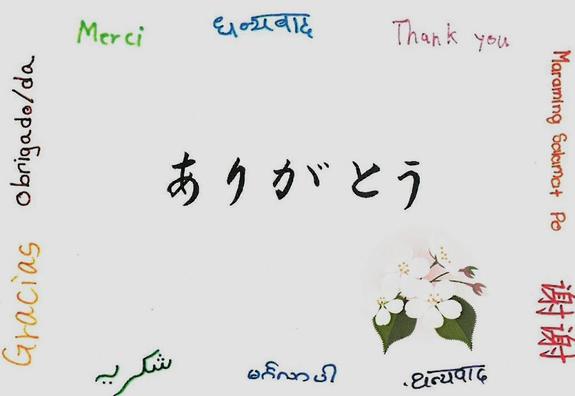 新宿在籍中の子どもたちが10の言語で書いた「ありがとう」入りです。