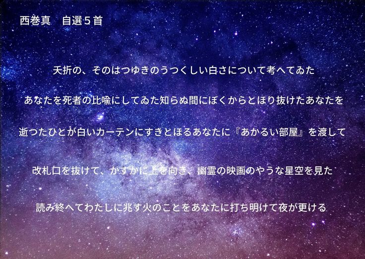 神奈川県横浜市で、「未来短歌会」に所属し、短歌を作っております西巻真と申します。