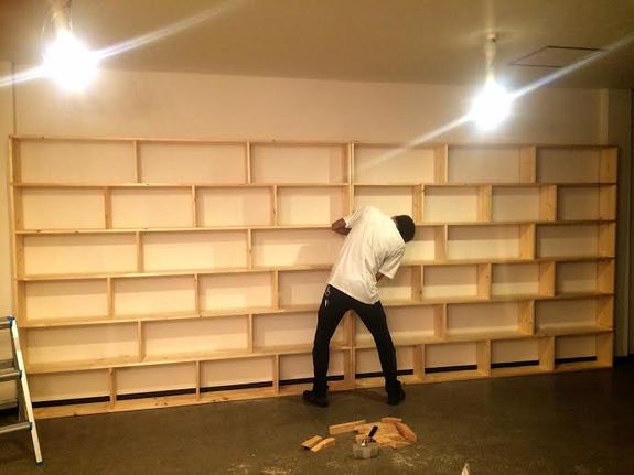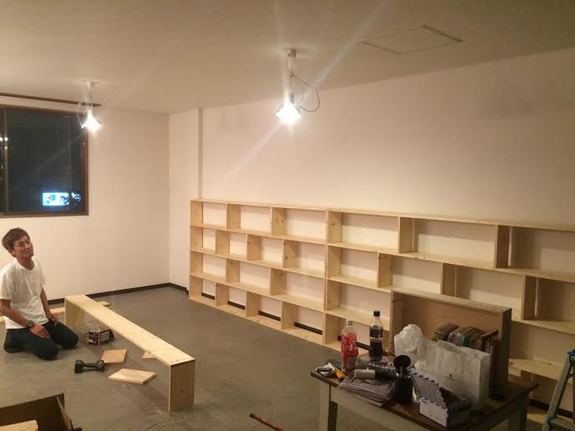 (現在の本棚を製作途中です!たくさんの本に囲まれ、だれでも訪れやすい、そんな空間を作りたいと思います!)