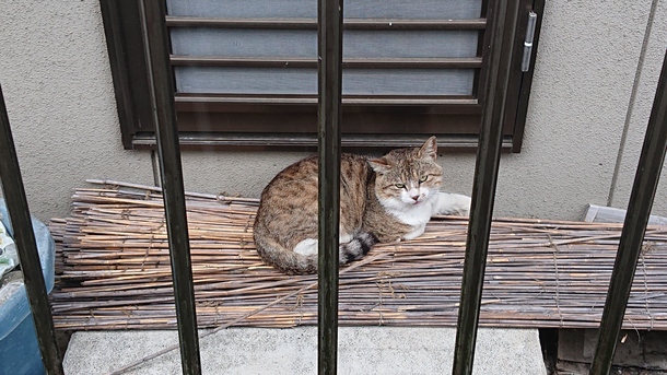 朝から隣の家のとこで寝てます。