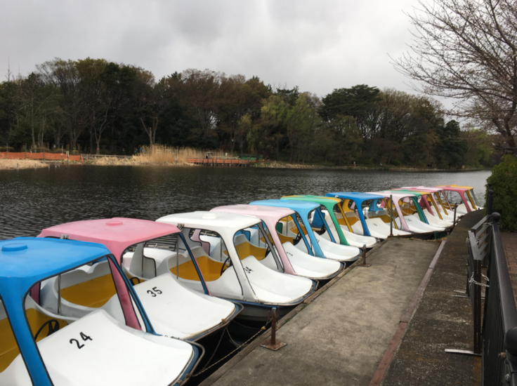 水抜きをした石神井池にはかなり水が入り、ボートも水面に戻りました。もう少しで元通り。桜は5分咲きくらいでしょうか。