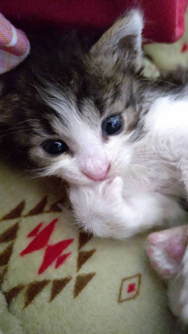 カリカリも、パウチも、仔猫ニャンズ🐈🐈🐈の中で、1番、もりもり食べます😁