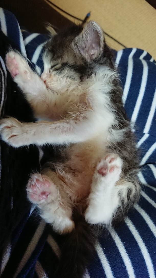 おでこを少し撫でてあげると、即、爆睡💤💤💤