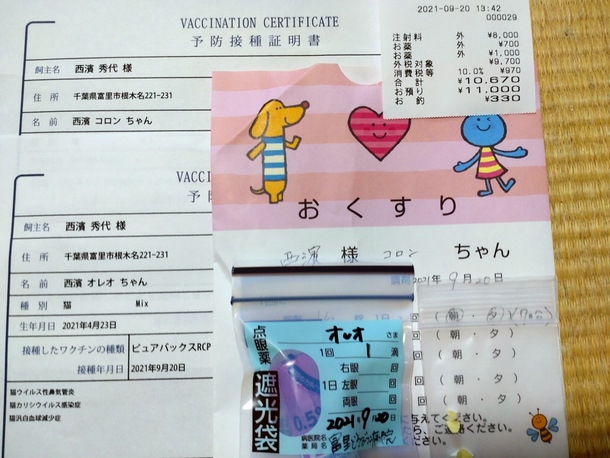 病院に行く前、コロン君💕も、オレオ君💕も寝ていたので、