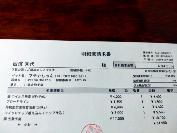 2週間、効果が続く抗生剤の注射と、皮下点滴をして頂きました🙇