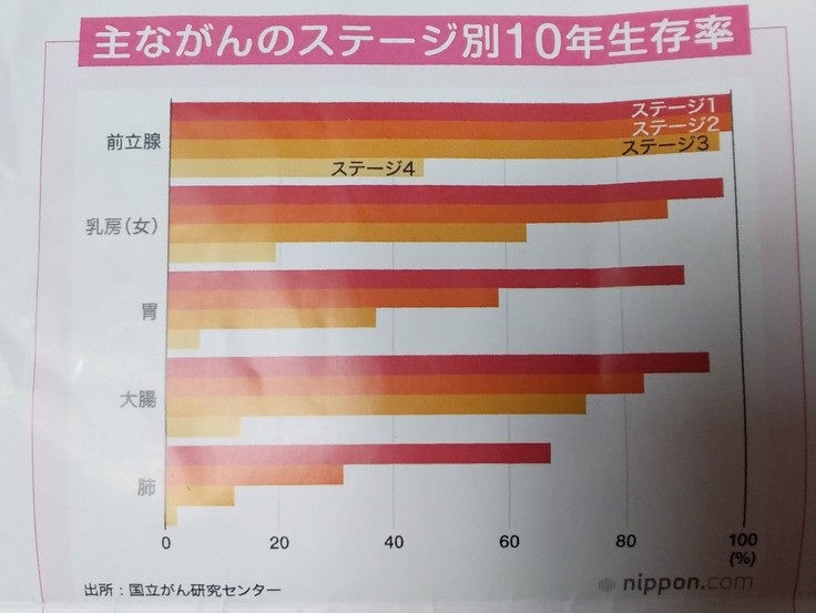 早期発見・早期治療により『がん患者さんの生存率』は、平均90%以上!