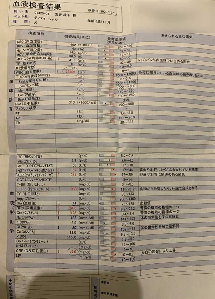 またその影響で血液検査の結果も悪く、肝臓などに炎症が起きている可能性が高く、
