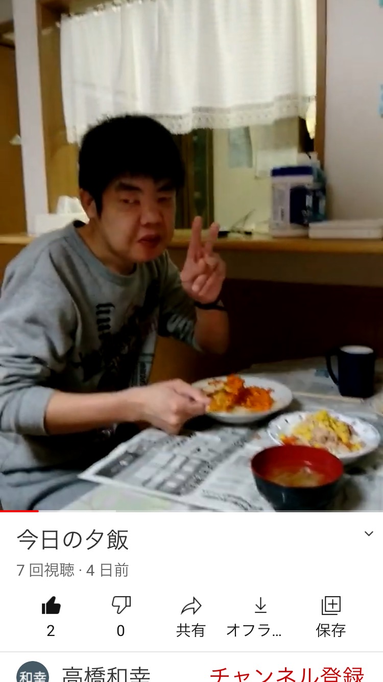 youtybeになりたい、どうしても僕を色んな人に知ってほしいと、切に願う入居者さん「じゃ何を撮る」と聞くと「ご飯食べてるところ」と言ったのでいざスタート、、何も話さずもくもくと食べている、、、(笑)