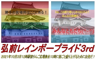 真冬の弘前を熱くすると叫んできました。屋内施設で入場制限はありますが、ミニライブも行いますし、ゲストアーティストも拡散に協力してもらってま可秋開催の弘前レインボープライドですが、弘前市パートナーシップ制度施行されたとはいえ、まだまだ、LGBTQに代表されるマイノリティに優しい街とは言い難いのが現実です。