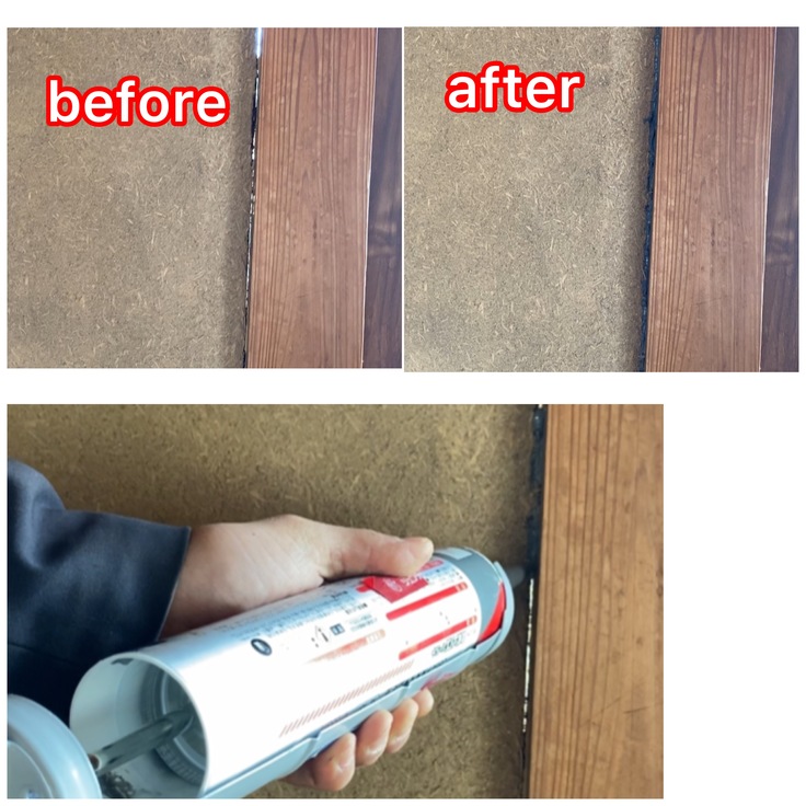 座敷にする予定の和室の壁が、新しい生活様式風換気抜群だったので、寒さが苦手な私、コーキングで塞いでやりました。