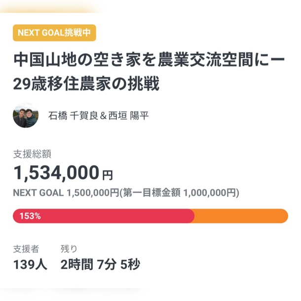 昨日から一気に勢いよくネクストゴールまで到達し、大変嬉しく思うと共に驚きました!