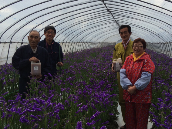 (亜臨界肥料の効果により、例年よりも花が高価で売買できたと喜びの声を寄せてくれた美唄農家の土屋さんご一家)