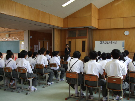 (中学校で出前授業を行っています)