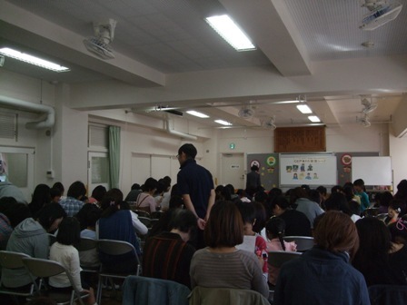都内の幼稚園に行きました。プログラムは「CEP親子の安全トレーニング」で、まだいじめではなく、連れ去り被害の防止です。子ども59名、保護者60名でした。