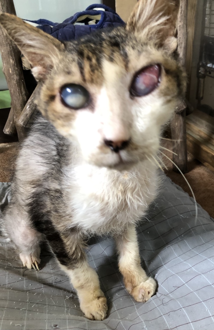 眼が見えず物にぶつかりながら歩いていた所を保護した猫もおり、