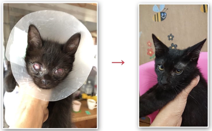 14頭の仔猫のうち4頭は保護時より眼の状態が悪く治療や手術をして頂き、