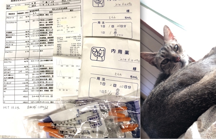 とらん君はインスリン投薬量が少し減らす事ができ、肝臓の薬はそのまま継続です。