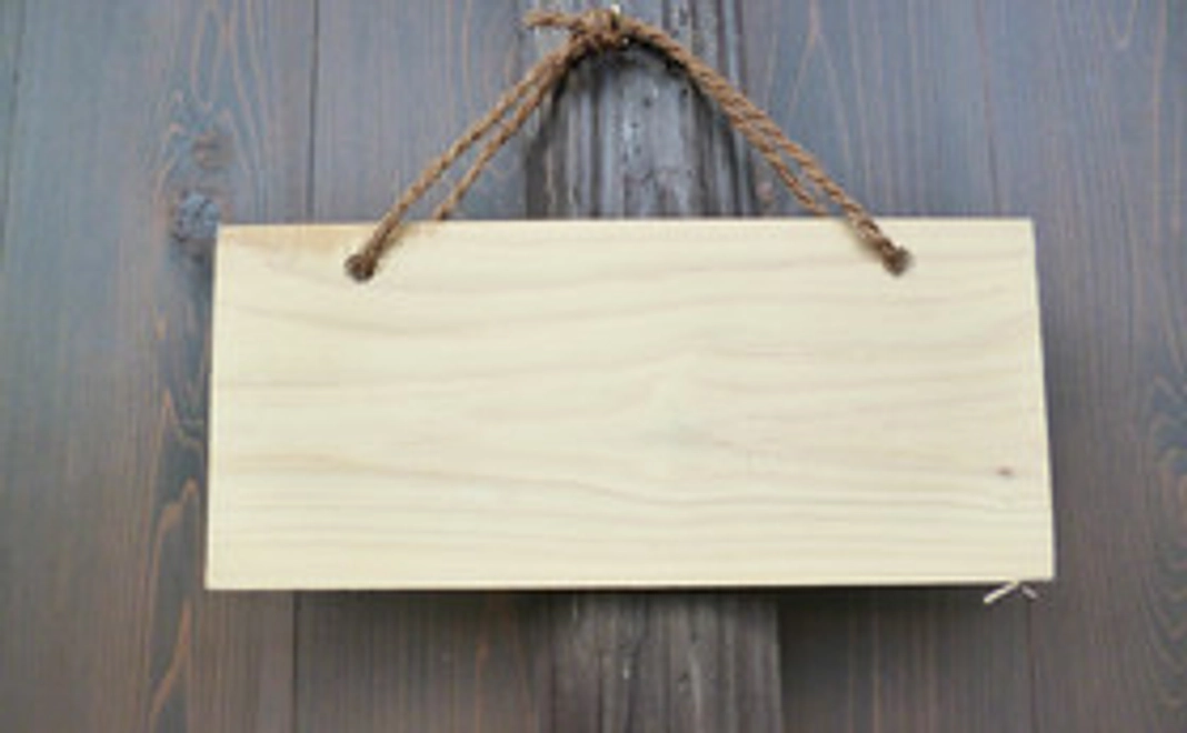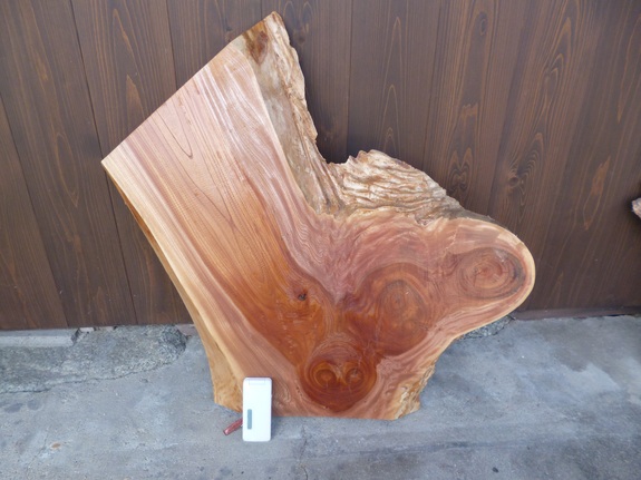 (乾燥無垢板、上部に穴をあけアサヒモを通しております。)
