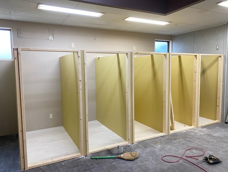 〇飛沫防止の観点からケージタイプの部屋ではなく全面壁タイプの個室での作成へ変更をし