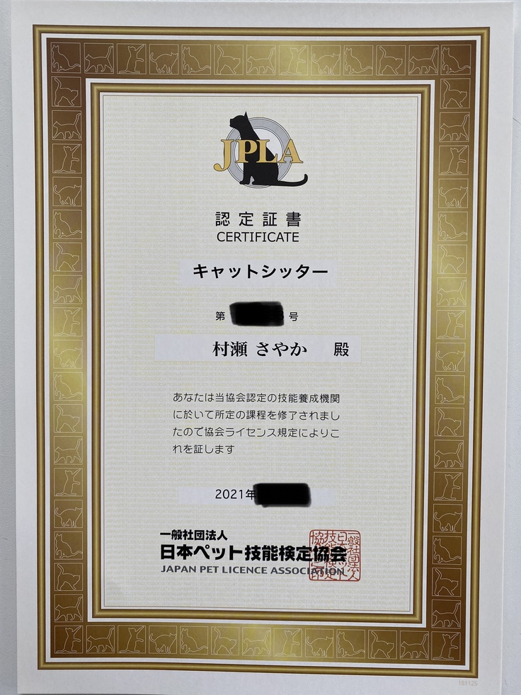 またお世話をするスタッフとしてキャットスペシャリスト、キャットシッターの資格を取得をしました。