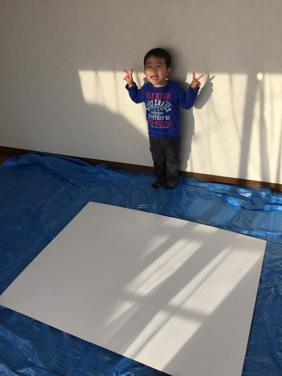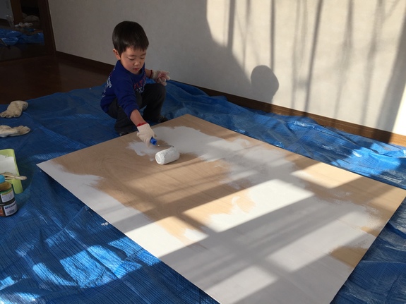 (写真は、3歳の息子が内装工事のお手伝いをしている様子です)