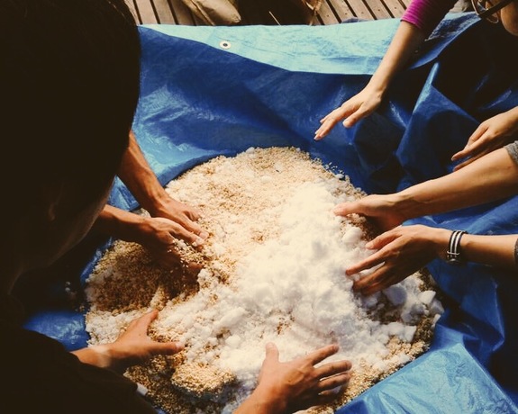 そこで、四賀にきましょ実行委員は考えました。「四賀の農家さんやデザイナーさんのそれぞれの仕事や暮らしの工夫がたくさんあるんじゃないかな。その工夫をもちよったら面白いお祭りができないかな。」と。