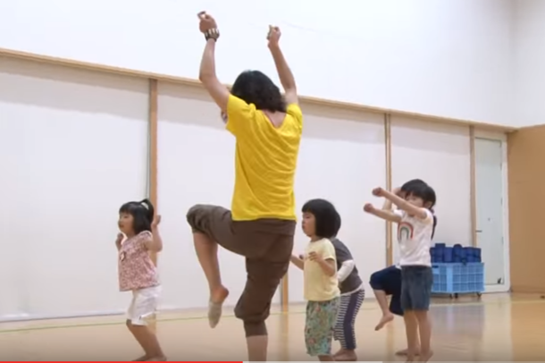 子供たちの親御さんの話では、気に入った曲のダンスは家に持ち帰って繰り返し踊ってくれているということでした。そこで、大人の間で流行しているダンスミュージックを使って長い振りを覚えることをレッスンで行うより、誰もが知っている短いフレーズでできた童謡を使うことで、覚える量や時間を短縮し、その分身体を目一杯使って踊ってもらう方が子供たちの体力づくりや技術力アップに貢献できるのではないかと考えました。