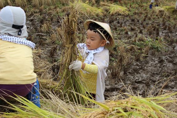 最後に子どもたちみんなで、田んぼにありがとうをいいました。