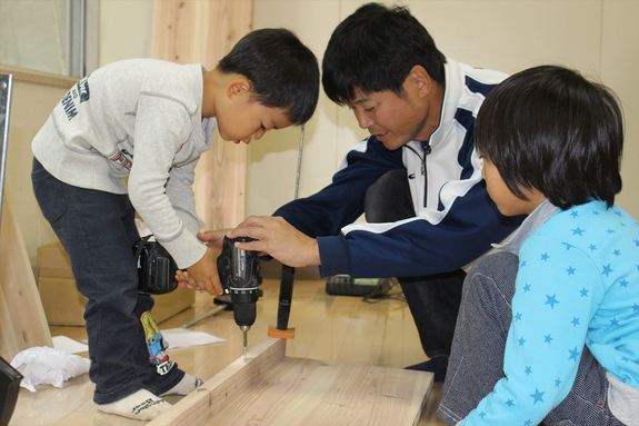 森の木を使って、家具をつくるワークショップが行われました!