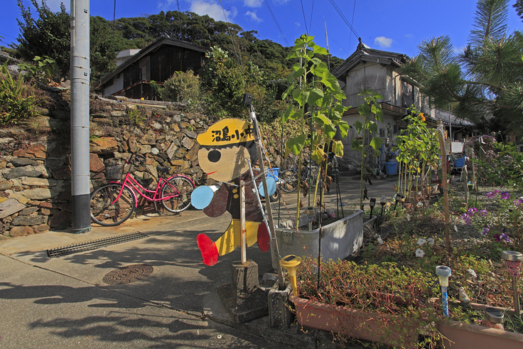 『道案内』正式名称は知りませんが、島内の至る所に出現します。誰が思いついたのかは知りませんが、ケチのつけようの無く沼島に定着しています。私はこの案内君を探しながら沼島を散策するのも楽しいかと思います。