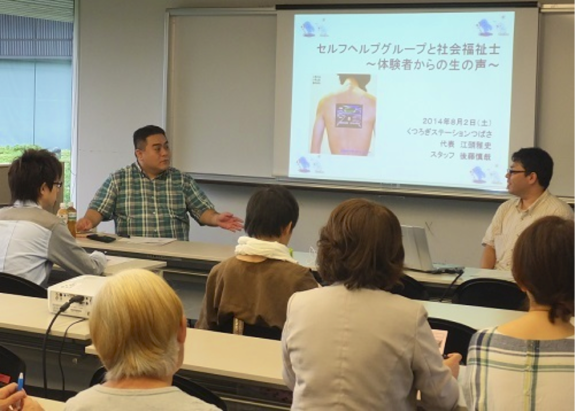 これは、「同じ困難を持ちながら生きる人と出会うことで、励まされ、生きる勇気をもらい、さらに、同じ困難を持つ者同士が支え合い、困難を持ちつつ生きて行く生活の知恵を学び合う場」を作ることに重きを置いているものです。そこへ、福祉的視点からで側面的に支援する手法と様々な社会資源を用いる手法などを加え、力を発揮させています。