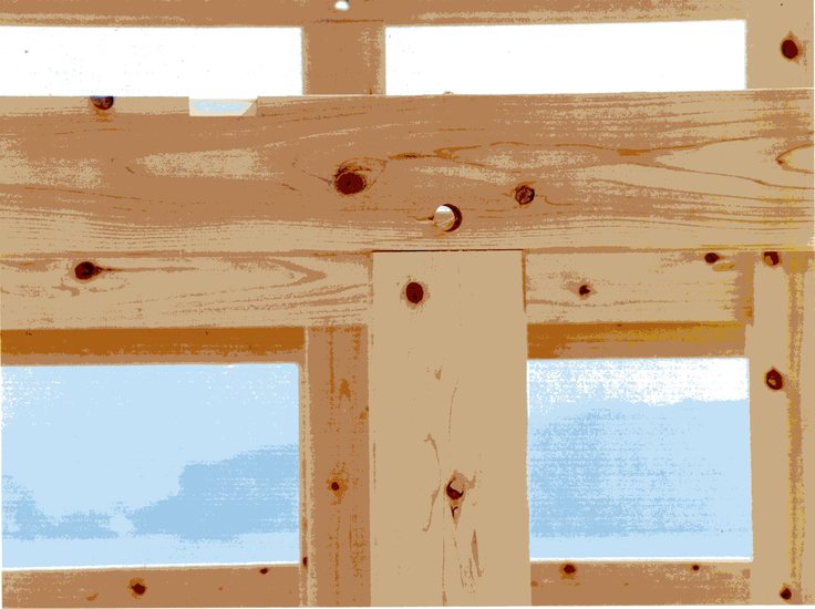 ⑤ 現在の木造軸組工法は、柱脚柱頭の「ほぞ接合部」の固定方法は釘、ネジ、接着で止めた金物部材が多く、材種ごとの分別に難があり、リサイクルが困難です。
