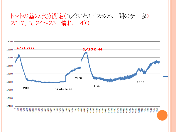 トマトの茎内の水分変化グラフ