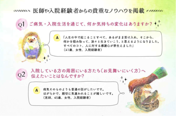 そのためには、入院・療養中とその周りの方との温かなつながりがあることや、病気になっても自分らしく、イキイキと暮らすことができるという選択肢があることを知ることができると良いのではと思いました。