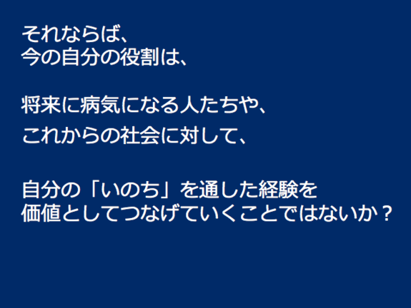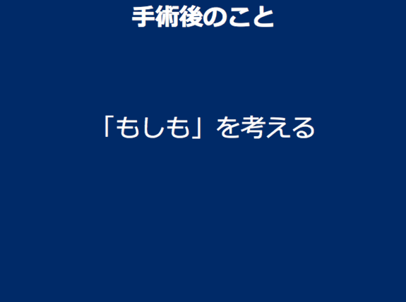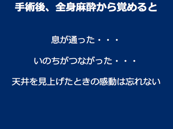 入院・手術の経験を通じて感じたことを、スライド形式で紹介しています。