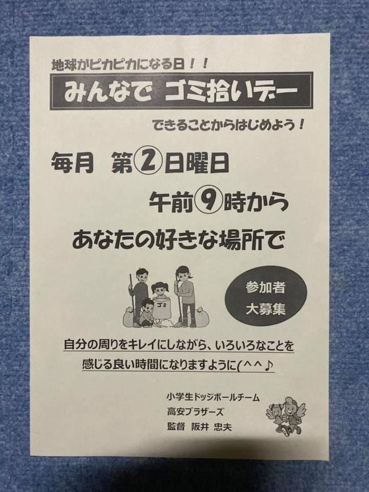 はじめまして、小学生公式ドッジボールチーム「高安ブラザーズ」監督の阪井忠夫です。これまで、母校の小学校・中学校PTA、子供会、福祉事務局等地域活動に関わってきました。