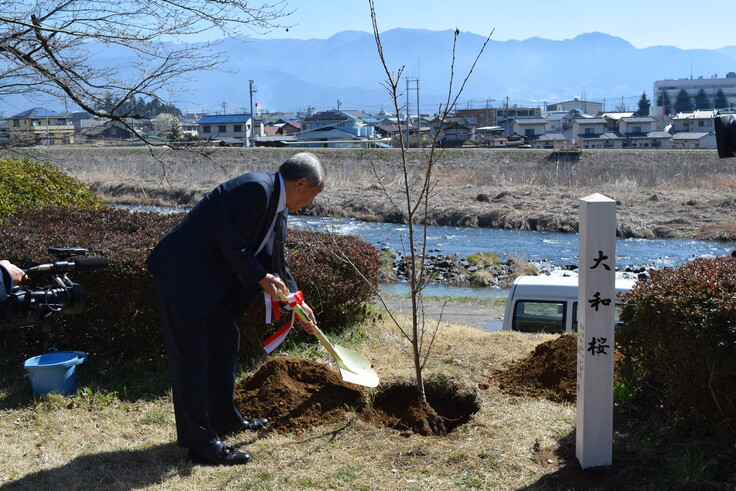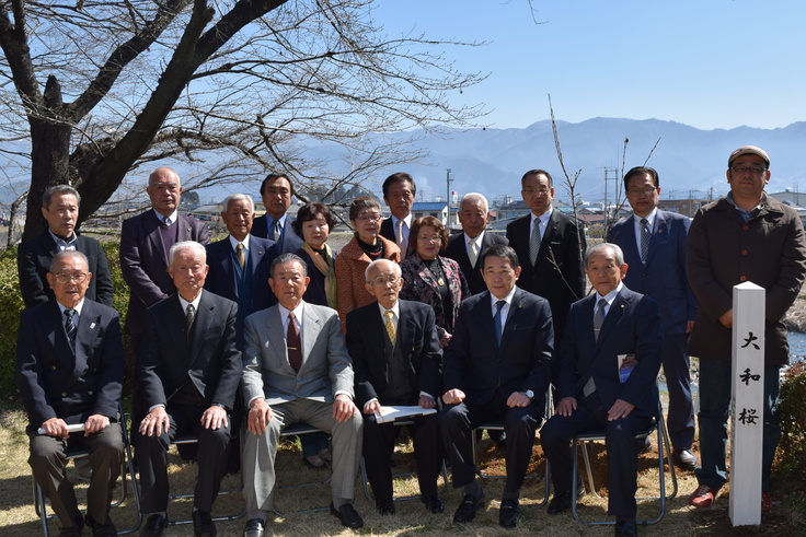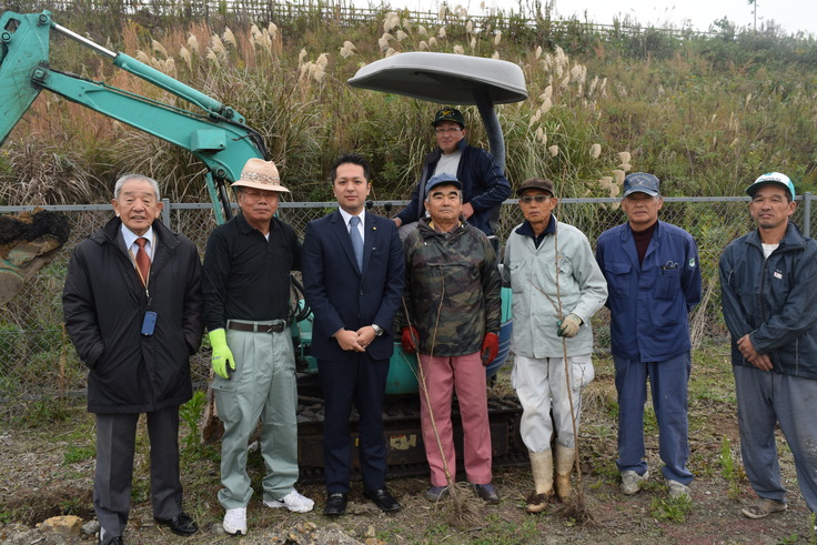 父子桜植樹 尾辻参議院議員・中村群司令・岡部・大山村長