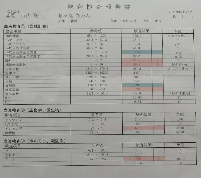 手術前の最終検査でアンモニアの数値は676とさらに上昇していましたが、その他の数値や全身状態から、手術は可能と判断されました。