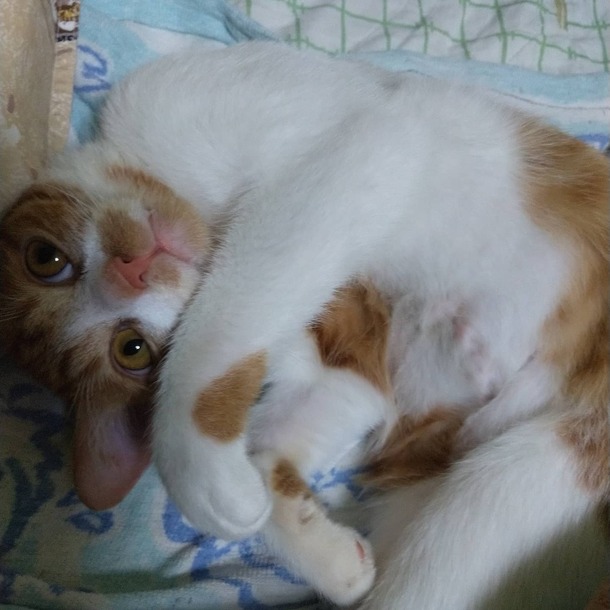 茶々丸は保護した当初は里親さんを探す予定だったので、名前をつけずに「ちびにゃん」と呼んでいました。(里親さんに名付け親になって欲しいという思いと、名前をつけると里子に出すのが辛くなるという理由で保護猫には名前をつけないようにしています。)