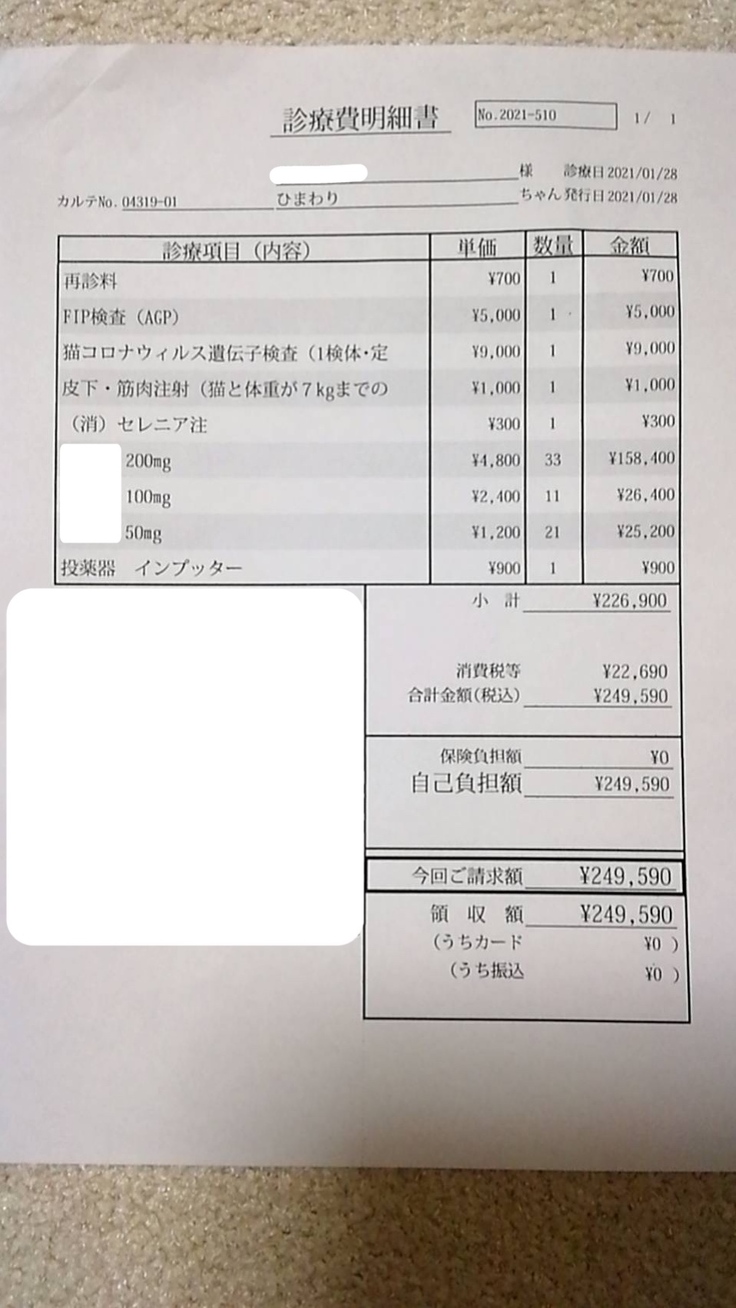 「しかし約2年程ほど前から、FIPに有効な海外の新薬があります。ただヒマワリちゃんは