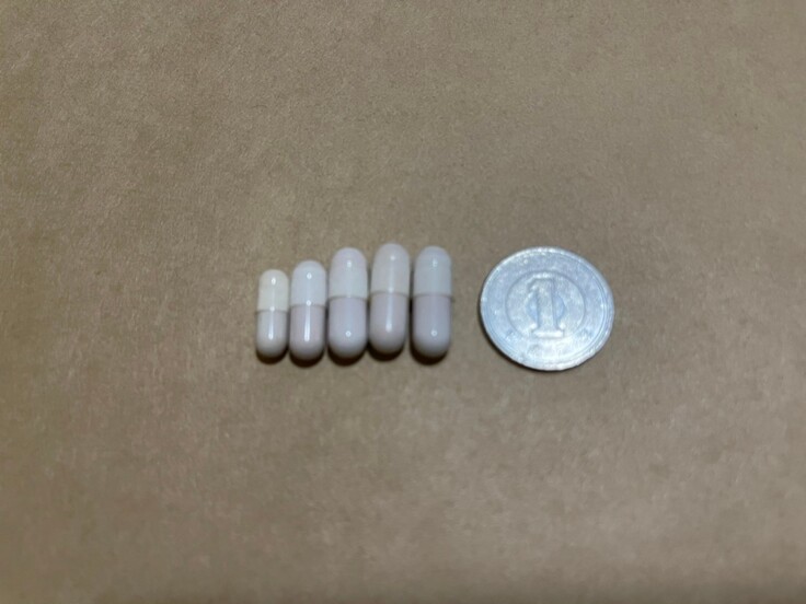 ヒマワリの体重は5.5kgで1日750mg(計5個のカプセル)投与となります。