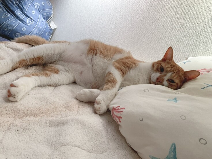 寝る時は一緒のベッドで寝て、沢山の癒しをくれます。
