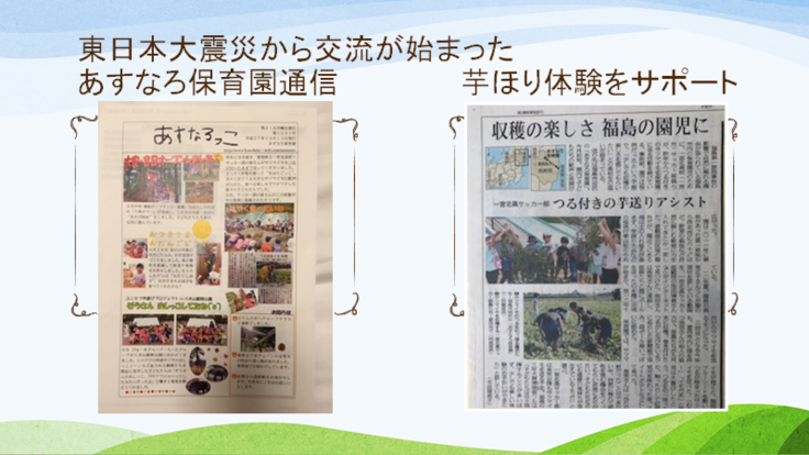 私も引率して愛知に来てくれた先生や保育園の園長先生との繋がりは強くなり、支援を行った自分が元気をもらうこと多く、福島での支援はある時から交流の要素が強くなってきました。人のためにしていることで充実感や達成感を得ることで人生が豊かになる実感を持ちます。