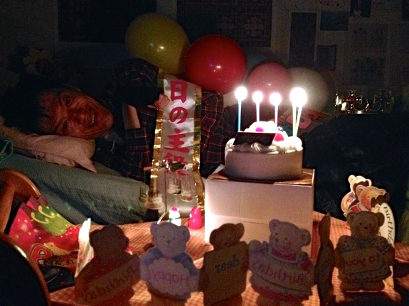 (大切な友人に囲まれて、誕生日を迎えることができます。)